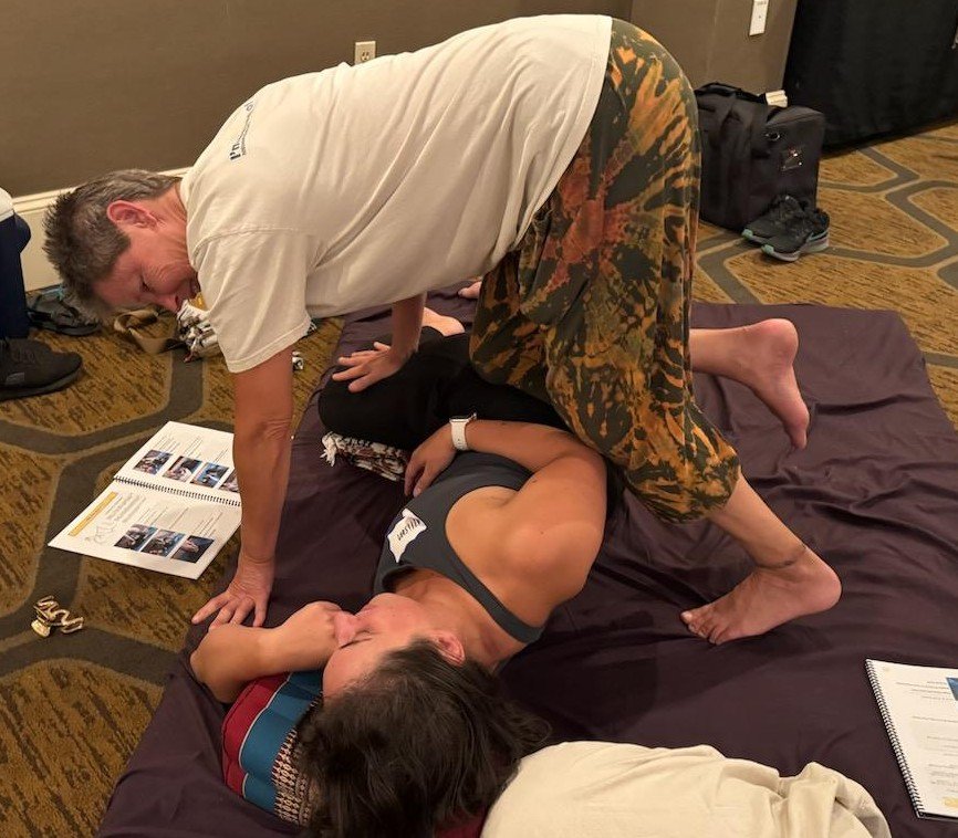 This is a one-hour clothes on mobility session on a mat on the floor or the massage table specifically focused on the areas you need work on. Great for those in chronic pain, headaches, or possible dizziness, low back pain, muscle stiffness, and more
